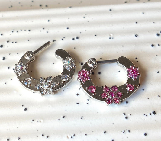 1pc Flower Paved Gems Septum Clicker Ring 316L Surgical Steel 16 gauge