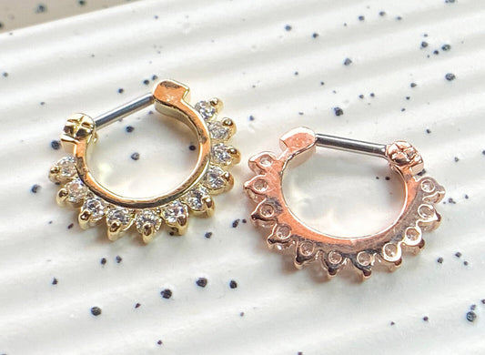 1pc Gold Plated 10 Paved Gem Septum Clicker 316L Surgical Steel 16g Nose Ring