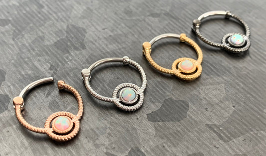 1 Piece Opal Roped Circle Design Septum Clicker Ring - 16g - Gold, Rose Gold, Rhodium and Steel!