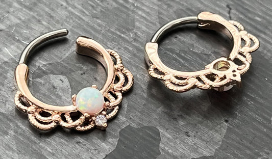 1 Piece Stunning Rose Gold Lacey Opal & CZ Gem Septum Steel Ring - 16g - 8mm Internal Diamater!