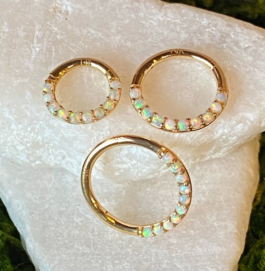 1 Piece of Beautiful Solid 14kt Gold Front Opals Hinged Segment Ring - 10mm, 8mm & 6mm