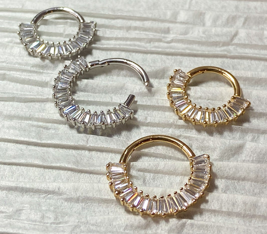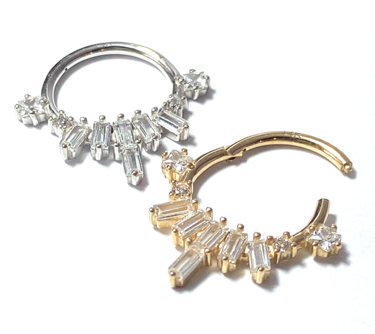 1 Piece of Stunning Solid 14kt Gold Baguette CZ Gems Hinged Segment Ring - 10mm & 8mm