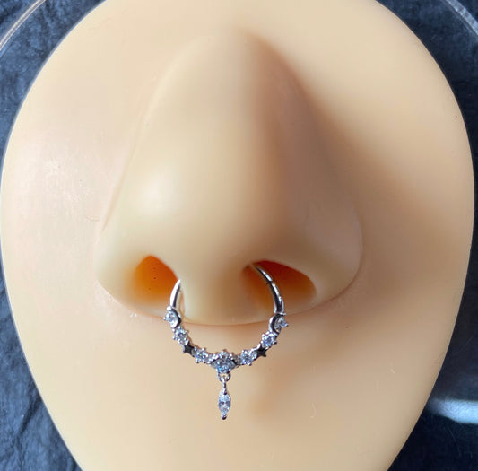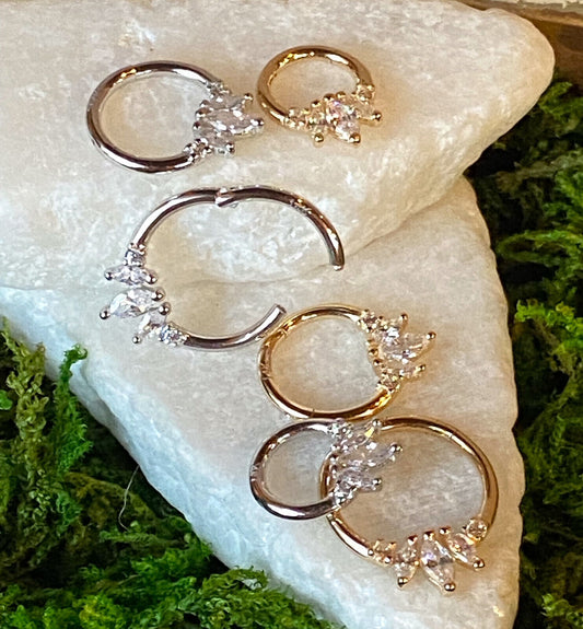 1pc Solid 14kt Gold Three Marquise Gems Hinged Segment Ring Helix Cartilage Clicker