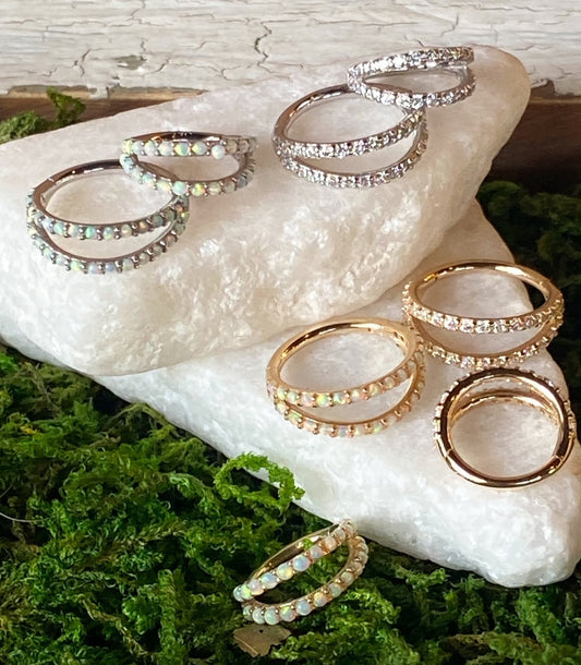 1 Piece of Stunning Solid 14kt Gold Side Opals Hinged Segment Ring - Only White Gold 10mm Left In Stock!