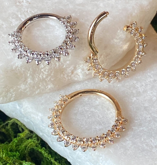 1 Piece of Stunning Solid 14kt Gold Front Paved CZ Gems Hinged Segment Ring - 10mm, 9mm, 8mm, 7mm & 6mm