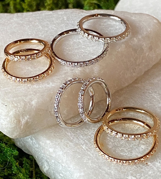 1 Piece of Stunning Solid 14kt Gold Side Paved CZ Gems Hinged Segment Ring - 10mm, 9mm, 8mm or 7mm