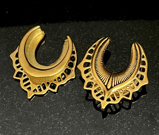 PAIR Tribal Filigree Gold Plated Copper Tunnel Ear Spreaders Plugs Gauges