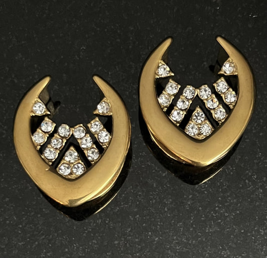 PAIR of Unique Paved CZ Gems Inner Design Saddle Surgical Steel Ear Spreader Hanger-Tunnels/Plugs -Gauges 0g (8mm) thru 1" (25mm)