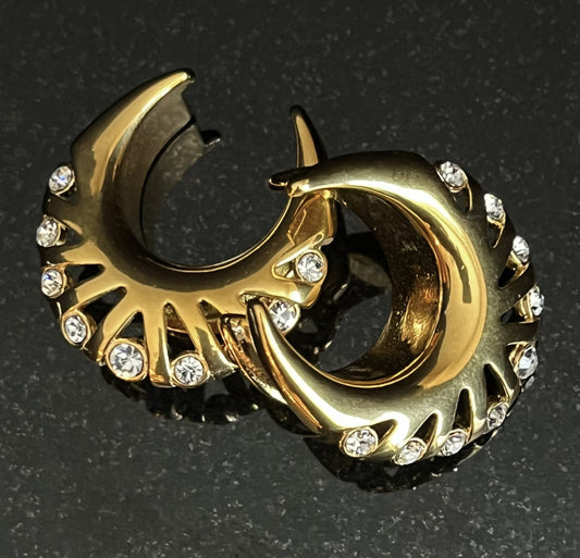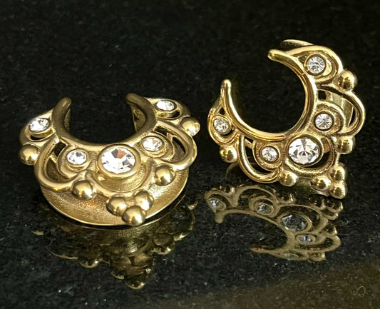 Pair of Stunning Gold Saddle Surgical Steel Ear Spreaders Hanger-Tunnels/Plugs - Gauges 00g (10mm) thru 1" (25mm)