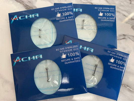 1pc Pre-Sterile Straight Barbell Tongue, Tragus, Nipple Ring Solid G23 Titanium