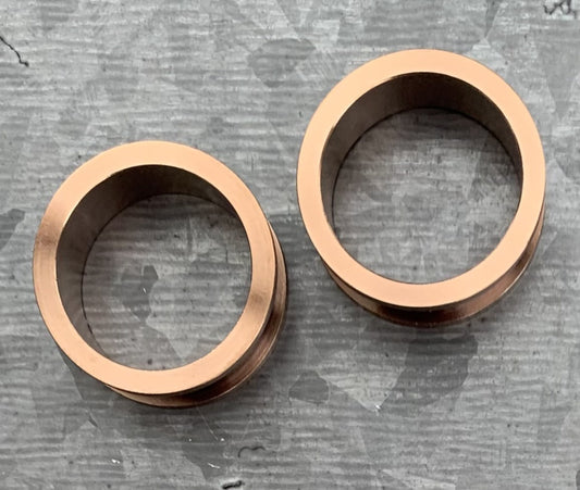 PAIR of Stunning Bronze Plated 316L Steel Screw Fit Tunnels/Plugs - Gauges 16g (1.2mm) thru 15/16" (24mm)