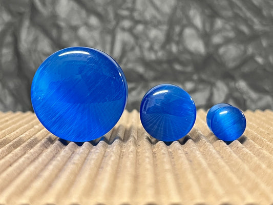 PAIR Blue Cat Eye Stone Double Flare Plugs Tunnels Earlets Gauges Body Jewelry