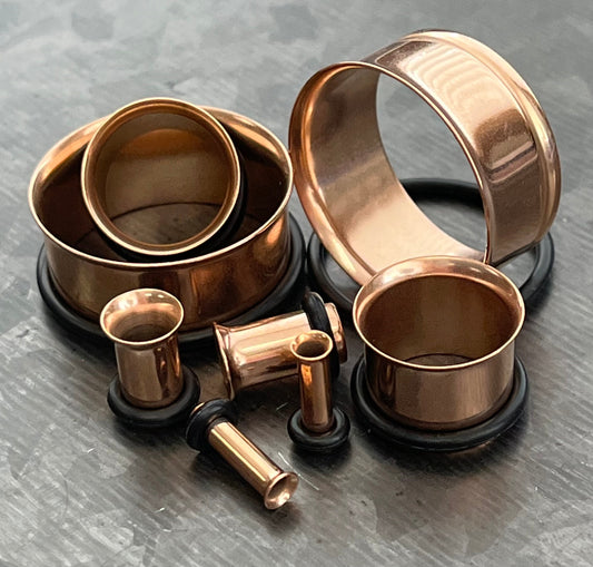 PAIR of Rose Gold PVD Plated 316L Surgical Steel Single Flare Tunnels/Plugs with O-Rings - Gauges 10g (2.5mm) thru 1" (25mm)