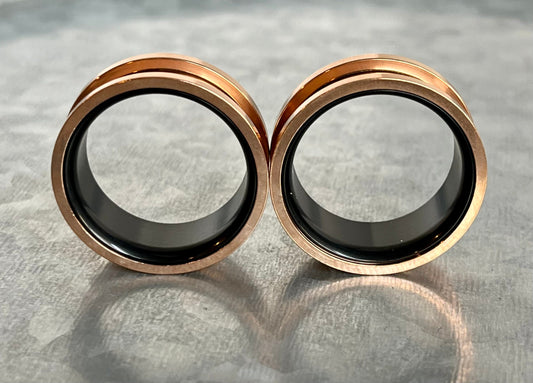 PAIR of Stunning Rose Gold with Black Interior 316L Steel Screw Fit Tunnels/Plugs - Gauges 2g (6mm) thru 1" (25mm)
