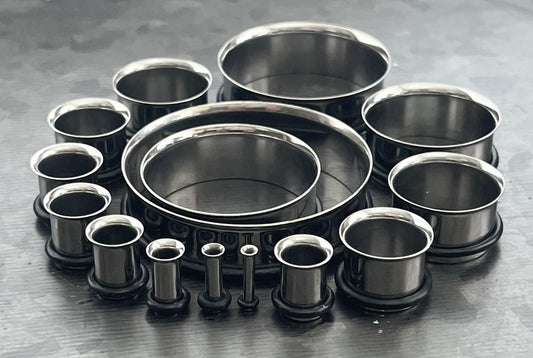 PAIR of Beautiful 316L Surgical Steel Single Flare Tunnels/Plugs with O-Rings - Gauges 12g (2mm) thru 2" (51mm)