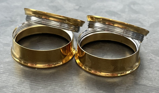 PAIR of Beautiful Gold PVD Plated 316L Surgical Steel Internally Threaded Tunnels/Plugs - Gauges 8g (3.2mm) thru 1" (25mm)