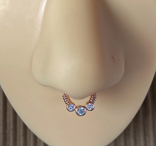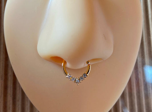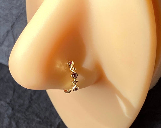 1pc Bendable Nose Hoop / Cartilage Ring Five Bezel Set CZ Gems for Rook, Daith
