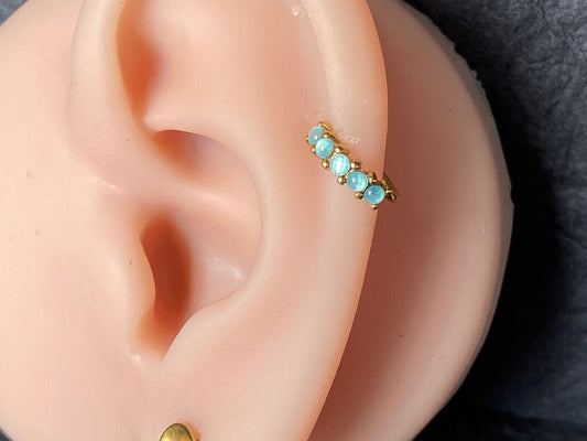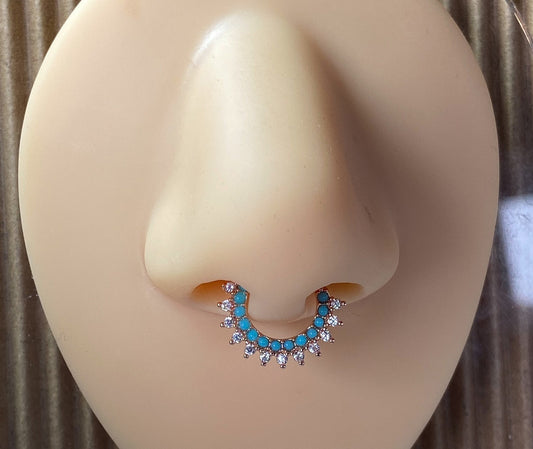 1pc Bendable Turquoise & CZ Gem Hoop Septum Ring Cartilage Daith Helix Tragus