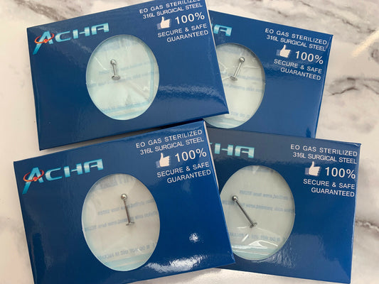 1pc Pre-Sterile Straight Barbell Tongue, Tragus, Nipple Ring 316L Surgical Steel