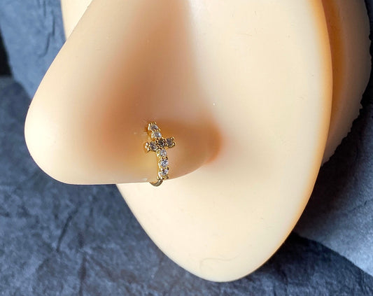 1pc Bendable Nose Hoop / Cartilage Ring CZ Gem Paved Cross for Rook, Daith