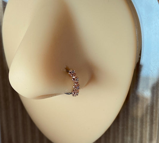 1pc Bendable Nose Hoop / Cartilage Ring CZ Gem Paved Flowers for Rook, Daith