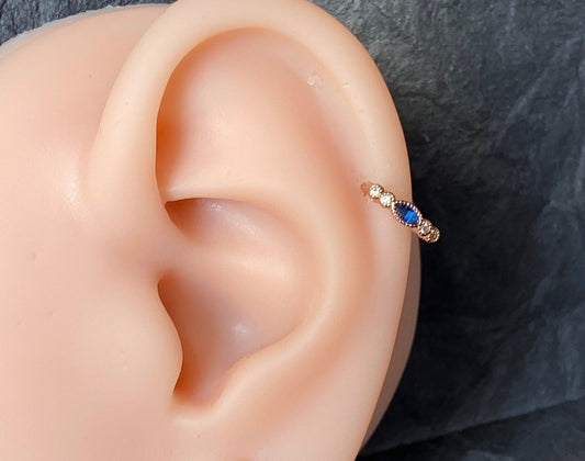 1pc Bendable Nose Hoop / Cartilage Ring Blue Marquise CZ Gem for Rook, Daith