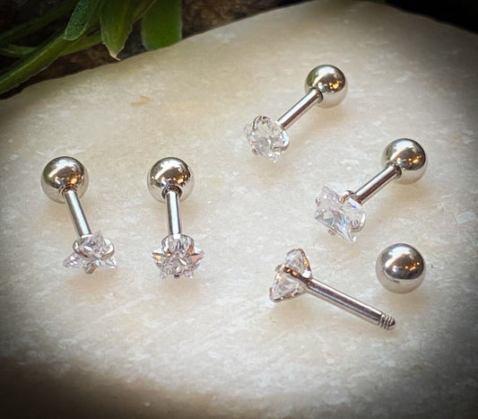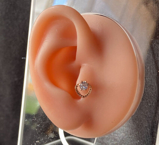 1pc CZ Hollow Heart Surgical Steel Helix Tragus Cartilage Barbell Stud Earring