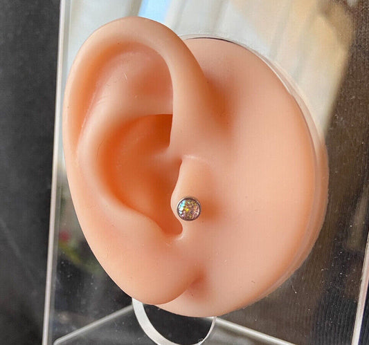 1pc Iridescent Druzy Stone Surgical Steel 16g Tragus Stud Ear Cartilage Ring