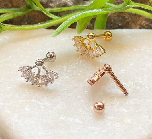 1pc Multi CZ Gem Fan Top Tragus Cartilage Barbell Stud Body Jewelry Ring 16g 6mm