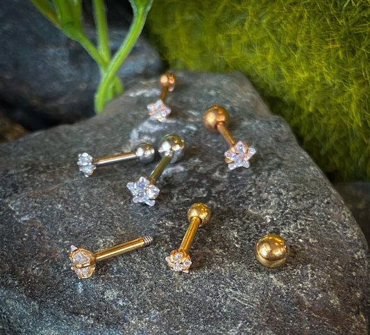 1pc Paved Gem Flower Tragus Cartilage Barbell Stud Body Jewelry Ring 16g 6mm