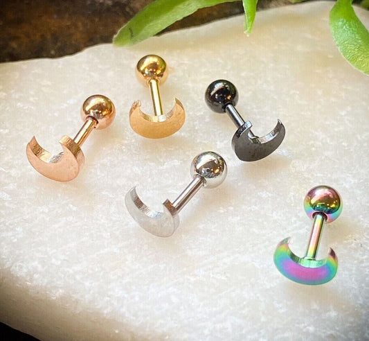 1pc Flat Moon Top Helix Tragus Cartilage Bar Stud Earring 316L Surgical Steel