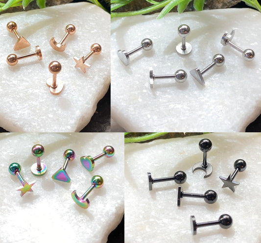 5pcs Shapes Tragus Rings Bulk Pack Cartilage Barbells Helix 16g Moon Star Heart
