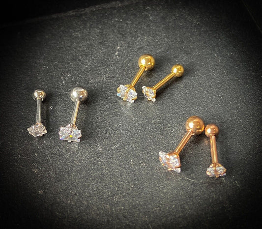 3pcs Square CZ Gem Ion Plated Tragus Stud Helix Cartilage Ring Earring 16g 1/4"