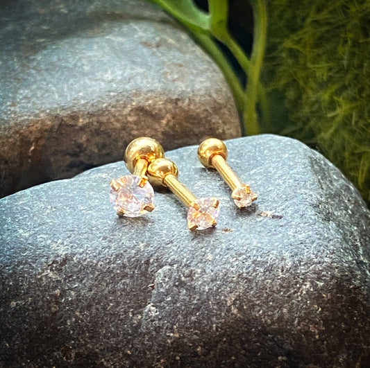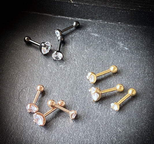 3pc Set of CZ Gem Ion Plated Tragus Helix Cartilage Ring Stud Earring 16g 1/4"
