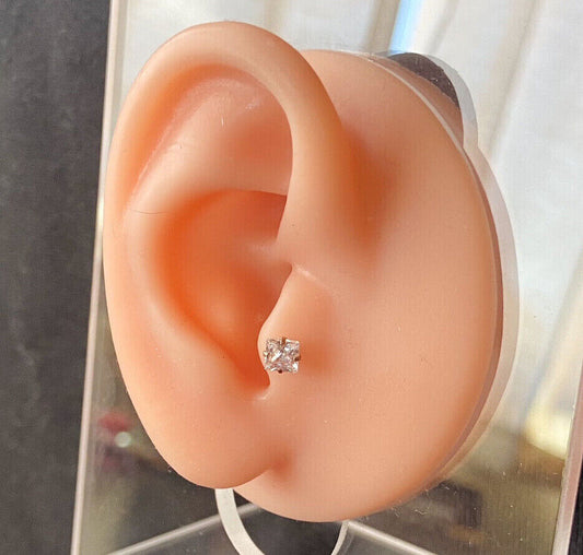 1pc Square CZ Gem Ion Plated Tragus Stud Helix Cartilage Ring Earring 16g 1/4"