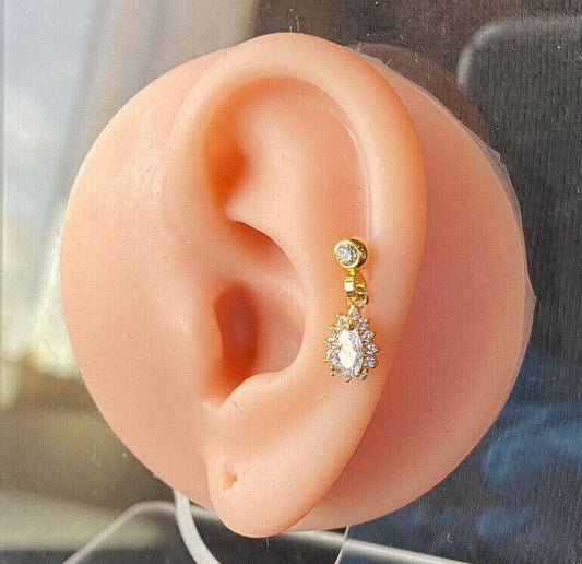 1pc CZ Gem Pear Dangle Surgical Steel Tragus Cartilage Barbell Ring 16g 1/4