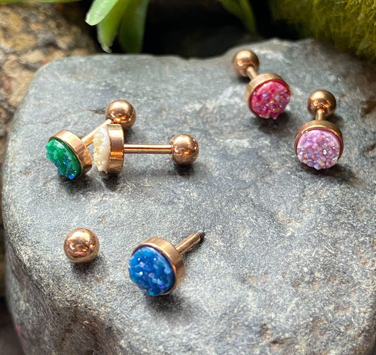 1pc Iridescent Druzy Stone Rose Gold Steel 16g Tragus Stud Ear Cartilage Ring