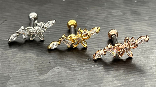 1 Piece Brilliant Marquise CZ Gem Flower Tragus Cartilage Barbell Stud - 16g - Wearable Length 6mm