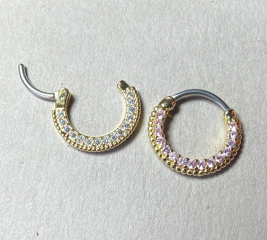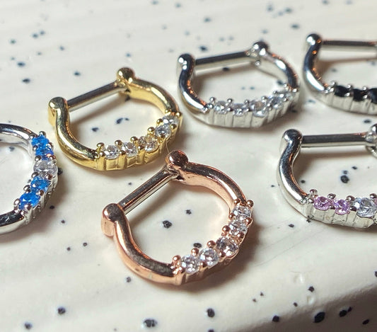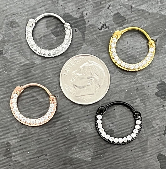 1 Piece Stunning 100% Surgical Steel Lined Crystal Septum Clicker Segment Ring- 16g