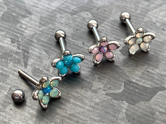 1 Piece Stunning Opalite & Opal Flower Steel Tragus Cartilage Barbell Ring - 16g - 1/4"(6mm)