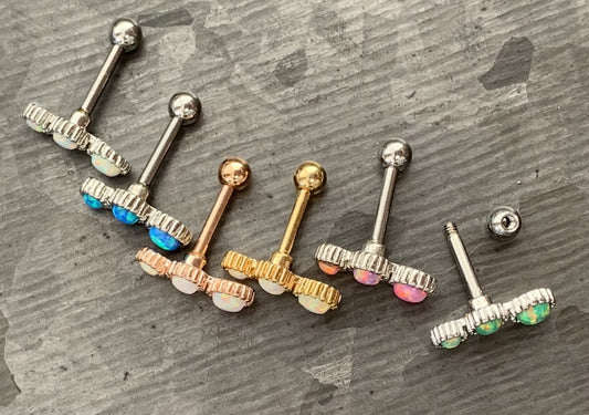 1 Piece Stunning Three Prong Set Opals Tragus Barbell Ring - 16g - Wearable Length 1/4" (6mm)