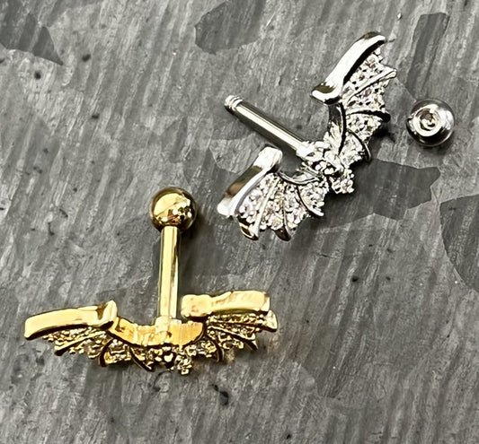 1 Piece Unique CZ Gem Paved Surgical Steel Bat Wings Tragus Cartilage Barbell - 16g - Wearable Length: 1/4"