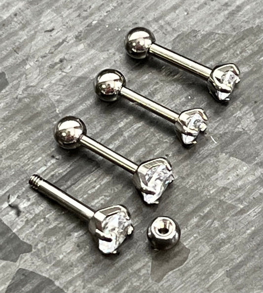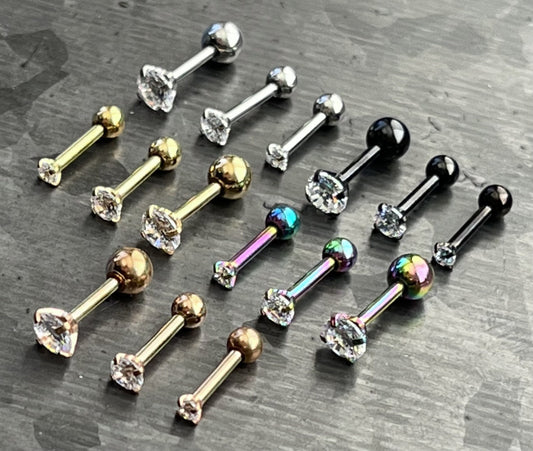 1 Piece Stunning Implant Grade Titanium Tragus Stud Prong Set Gem Cartilage Barbell Ring- 16g or 18g, 3mm or 4mm Crystal Gem Size!