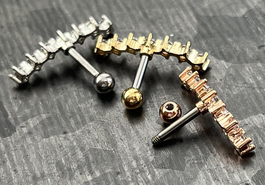 1 Piece Stunning Seven Cubic Zirconia Prong Set Tragus Barbell Ring - 16g - Wearable Length 1/4" (6mm)