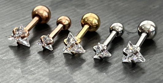 1 Piece Stunning Triangle CZ Gem Ion Plated Tragus Stud -16g