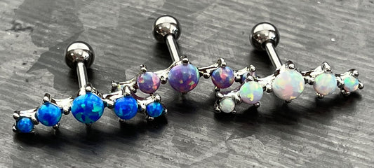 1 Piece Triple Round Opal Steel Tragus Cartilage Stud/Ring - 16g - 1/4" (6mm)