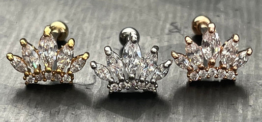 1 Piece Brilliant CZ Paved Taira Princess Crown Tragus Barbell Ring - 16g - Wearable Length 1/4" (6mm)