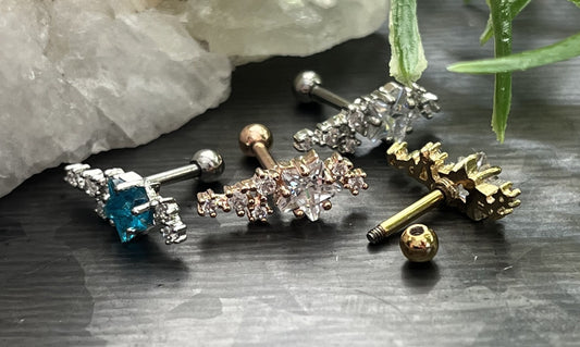 1 Piece Brilliant CZ Gem Star Cluster Tragus Barbell Ring -16g - Wearable Diameter 1/4" (6mm)