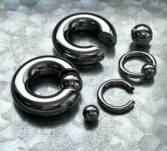 1 Piece Spring Loaded Captive Bead Large Gauge Steel Segment Ring/Hoop - Easy Pop Out - Gauges 8g (3.2mm) thru 00g (10mm)