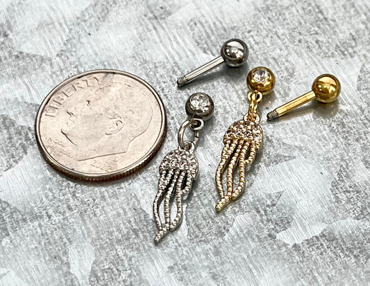 1 Piece Unique CZ Gem Jellyfish Dangle Surgical Steel Tragus Barbell Stud/Ring - 16g - Wearable Length 6mm